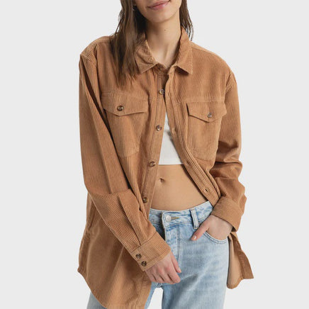Patch pockets, partially recycled tortoise buttons, and tailored trims