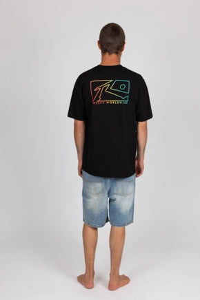 1). FRONT AND BACK SCREENPRINT 2). RUSTY WOVEN LABEL